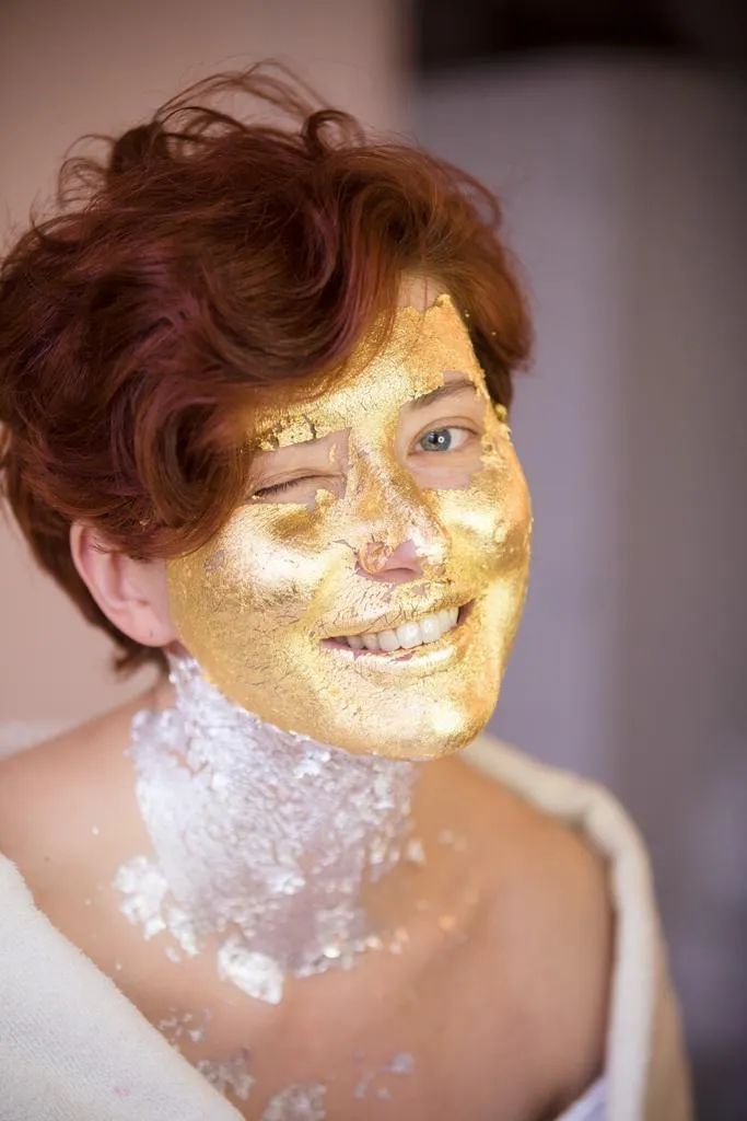 Das Anwenden einer goldenen Maske ist die letzte Stufe des Schönheitsrituals.